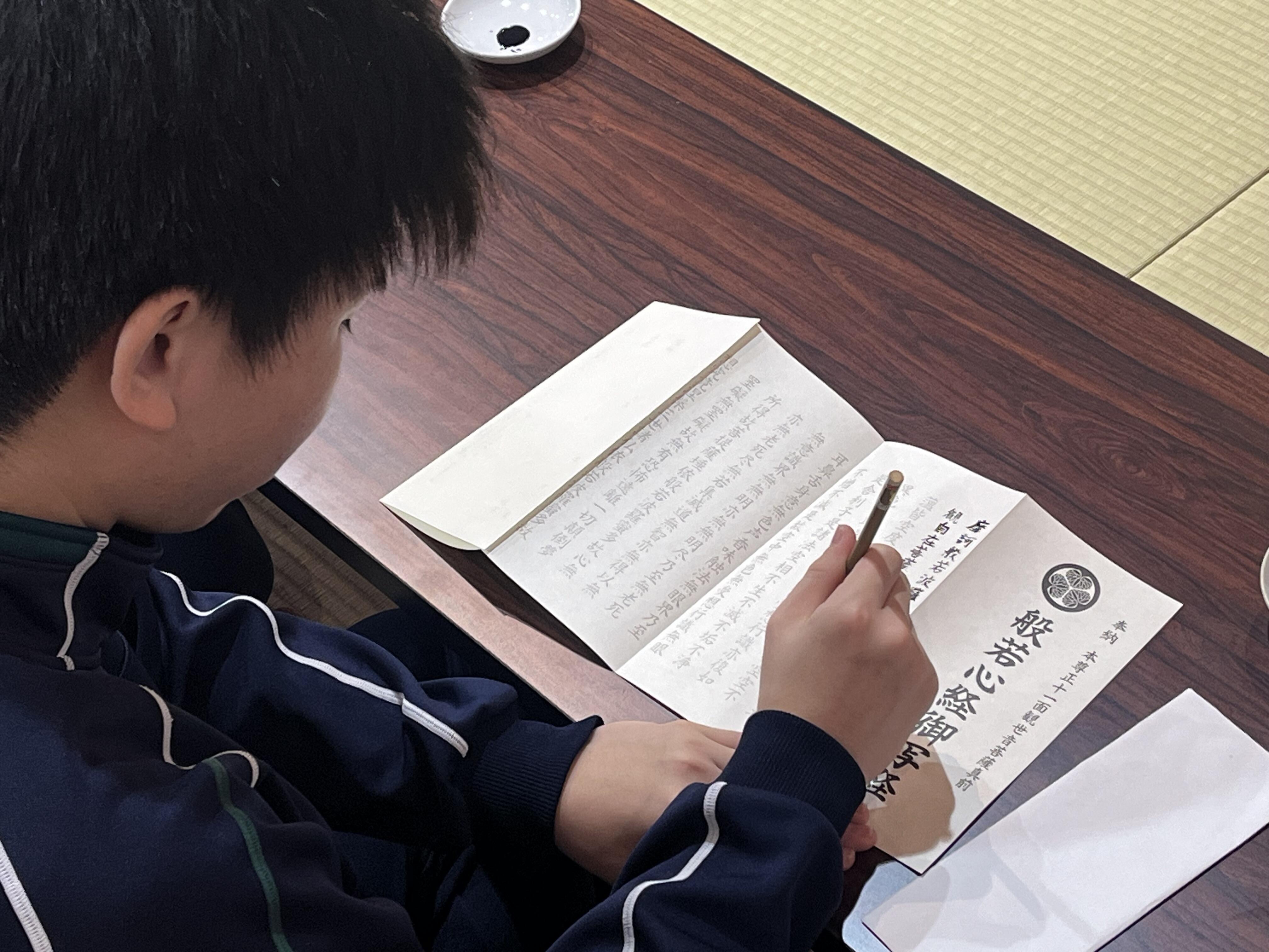 大安禅寺にて、写経と座禅の体験を
