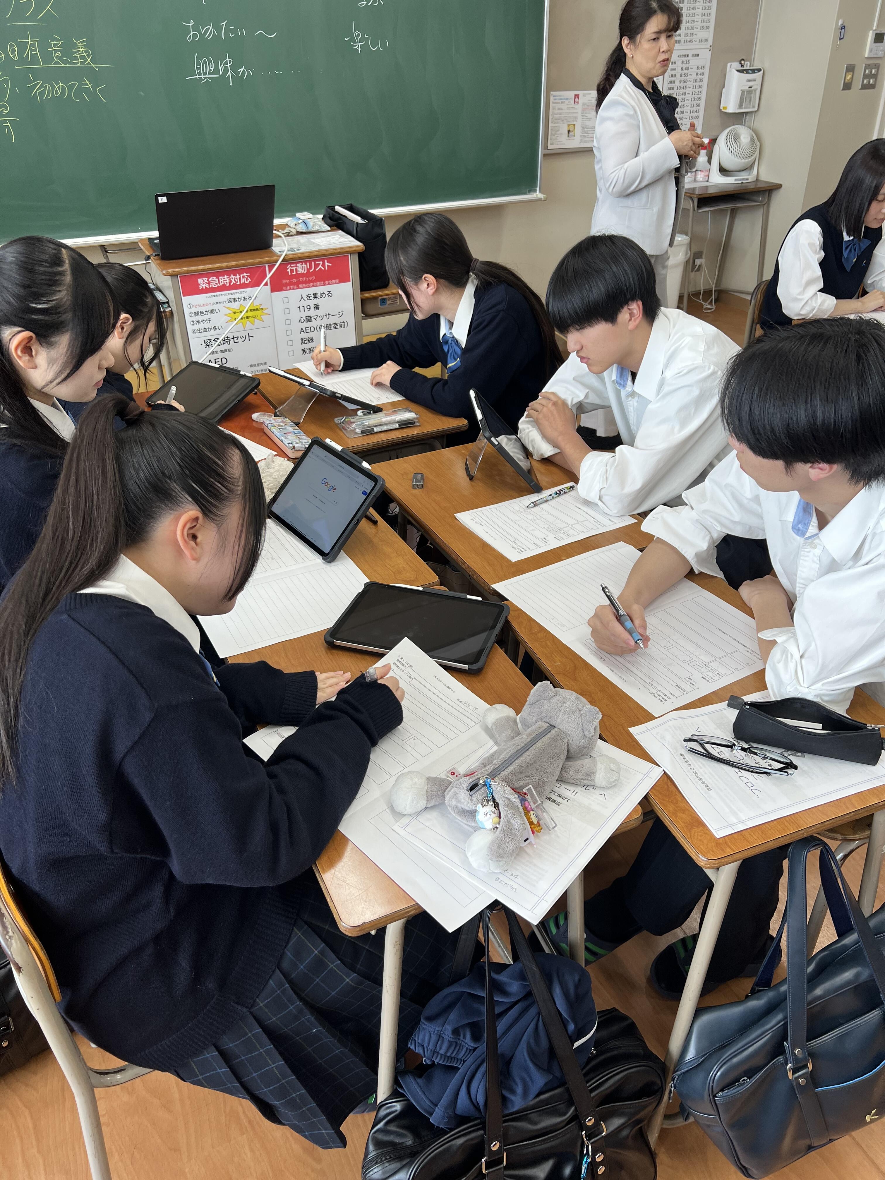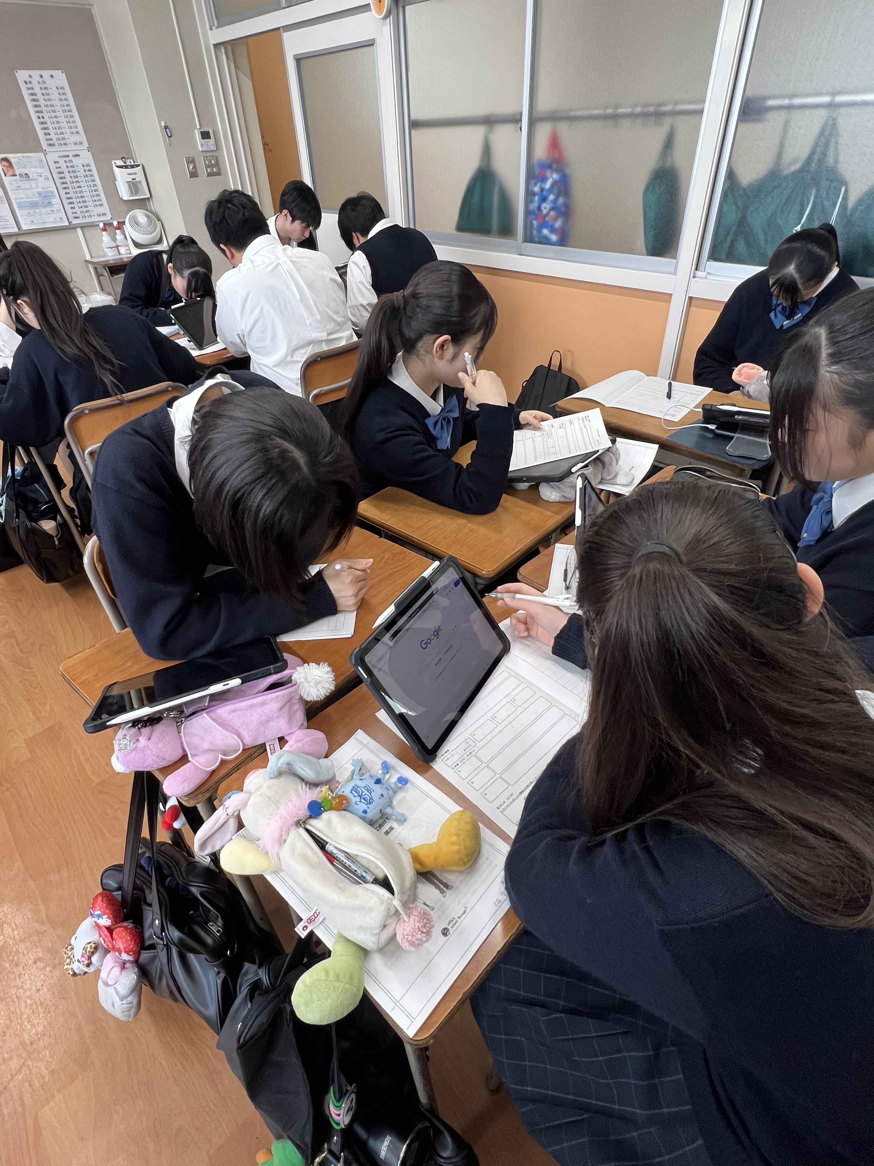 生徒たちは、講座を視聴しながら、