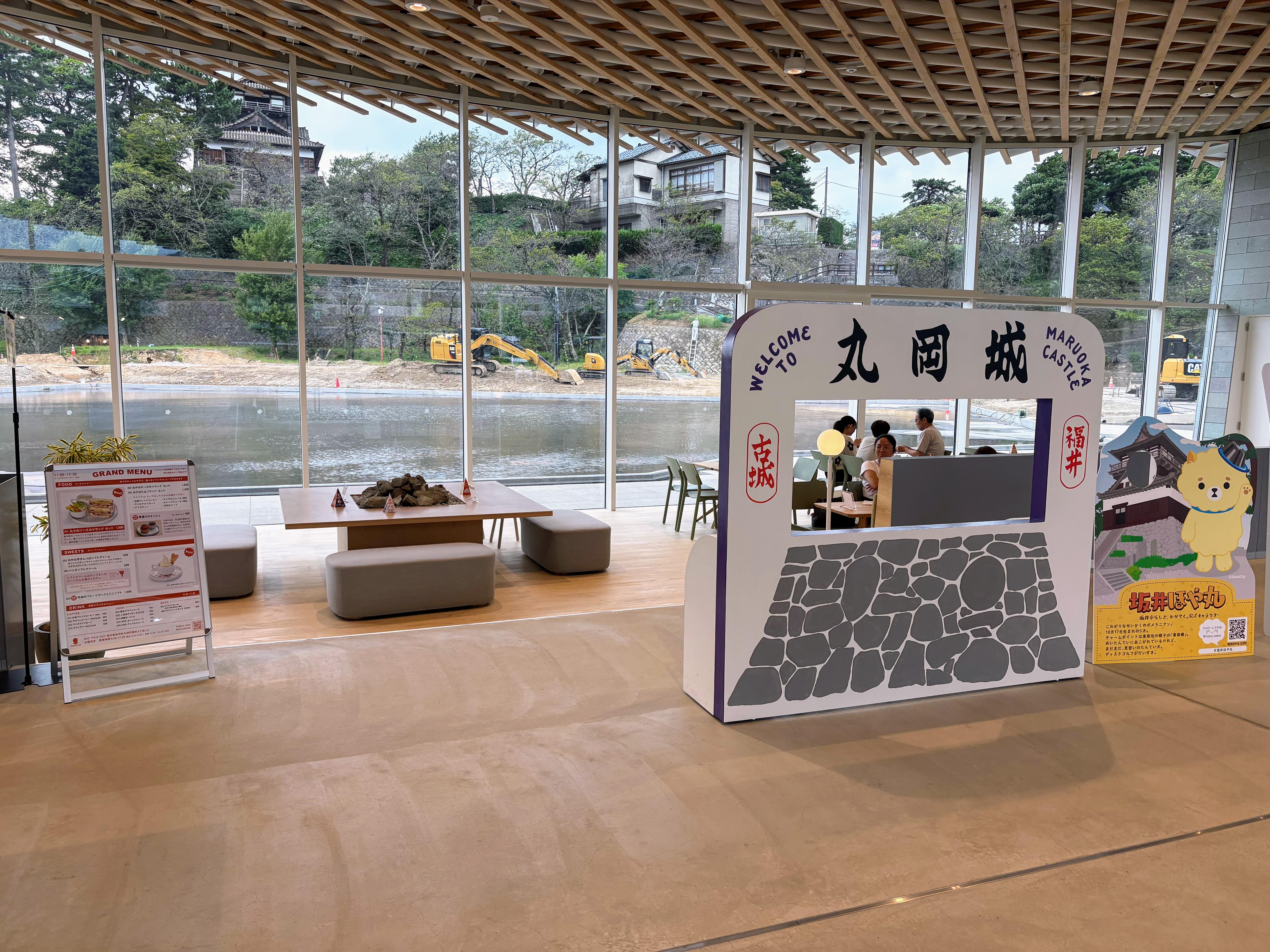 カフェでは、丸岡城を眺めながら
